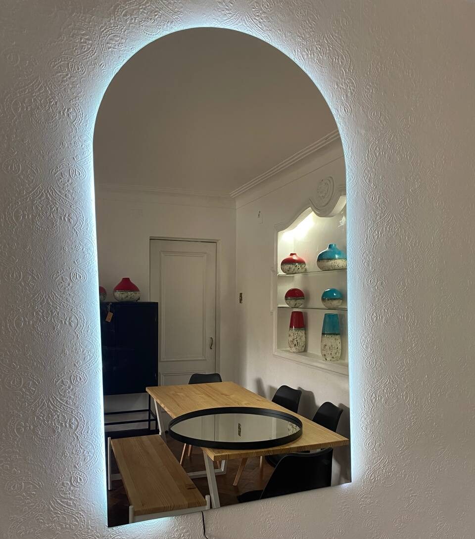 Un espejo de arco sin marco elegante es una pieza de decoración que combina funcionalidad y estética de manera sofisticada. Un clásico atemporal que nunca falla.