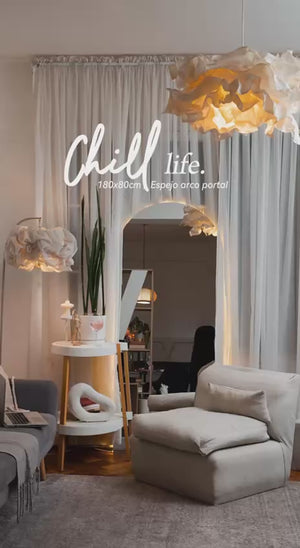Espejo de bordes pulidos con colgantes de aluminio, tambien puedes pedirlo con base sin valor adicional y escoger si lo quieres con led. Muy practico a su instalación e incluye despacho en esta edición promocional